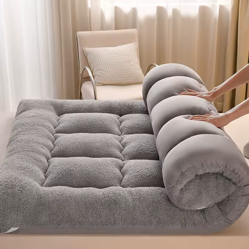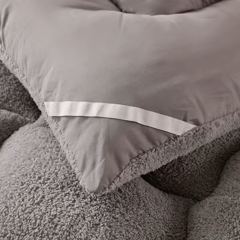 Gruba warstwa imitacji owczej wełny tworzy izolację. Dzięki temu nie marzniesz, nawet gdy mieszkanie jest chłodne — spokojny, głęboki sen bez budzenia się z zimna.